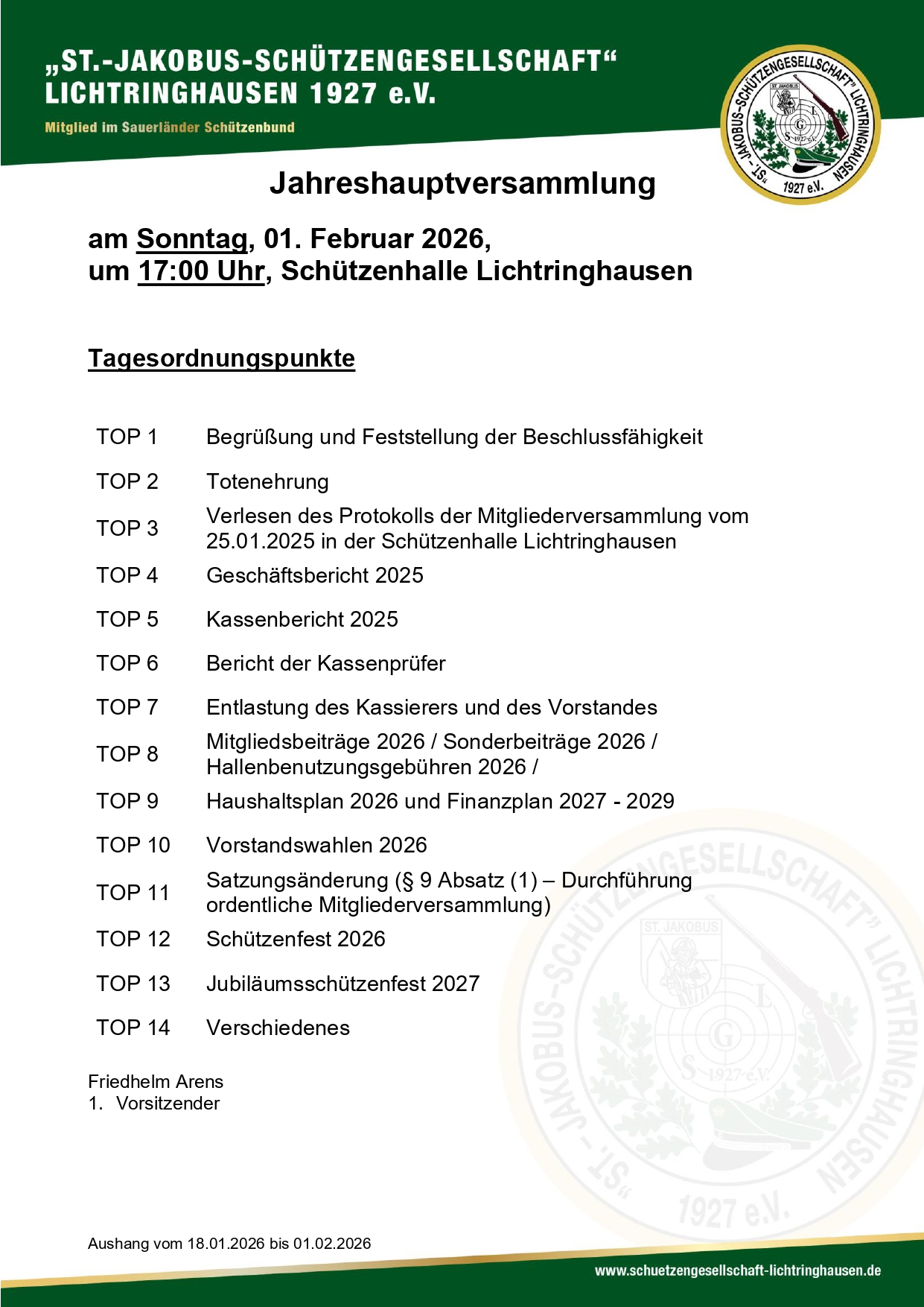 Jahreshauptversammlung der St. Jakobus Schützengesellschaft e.V.